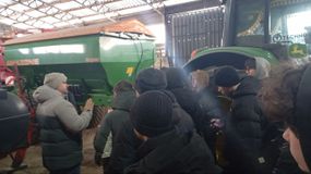 В ходе экскурсии студенты посетили мастерские, где осуществляется ремонт сельскохозяйственной техники. Денис Михайлович продемонстрировал современную технику, недавно приобретённую хозяйством, и объяснил, как она помогает повышать эффективность работы. Затем гостям показали места хранения сельскохозяйственной техники: зерновые комбайны, плуги и посевные агрегаты. Особенно запоминающимся моментом стало то, что студентам предложили посидеть в кабине трактора - это позволило им на практике ощутить, каково это - управлять такой машиной.